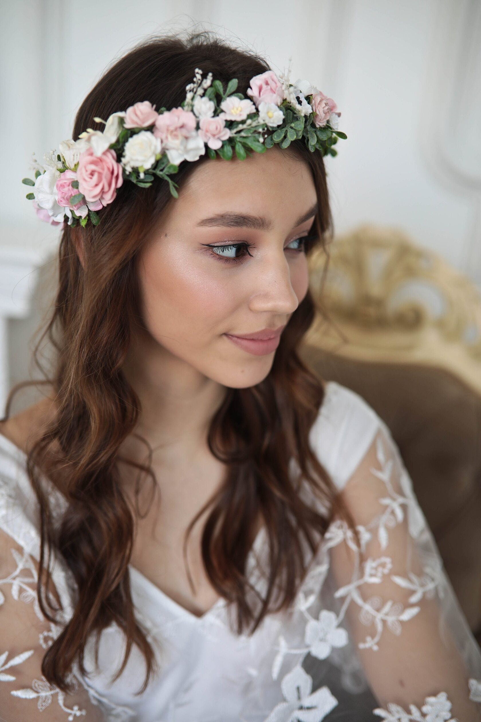 Flower crowns and updos are a match made in heaven. Whether you opt for a classic chignon, a messy bun, or a braided halo, position your crown so it accentuates the shape of your style. For a modern twist, try weaving the crown into the braid itself or placing it at the back of the head as a finishing flourish.