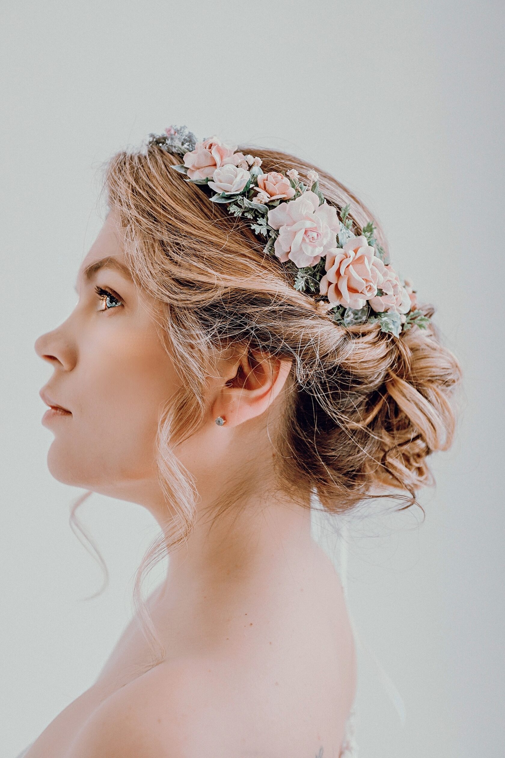 Asymmetric pieces feel modern and artistic, drawing the eye with intentional imbalance that creates visual interest. A cluster of blooms positioned over one ear, trailing down with ribbon or delicate foliage, offers contemporary sophistication perfect for minimalist gowns or city weddings.